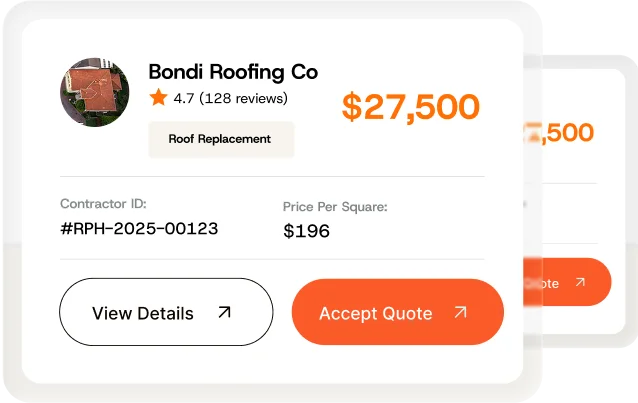 RoofHero simplifies the roof replacement process by generating an AI-powered roof report, collecting competitive quotes from vetted contractors, and guiding you to make the best decision for your home. We handle the hard part so you can focus on what matters.